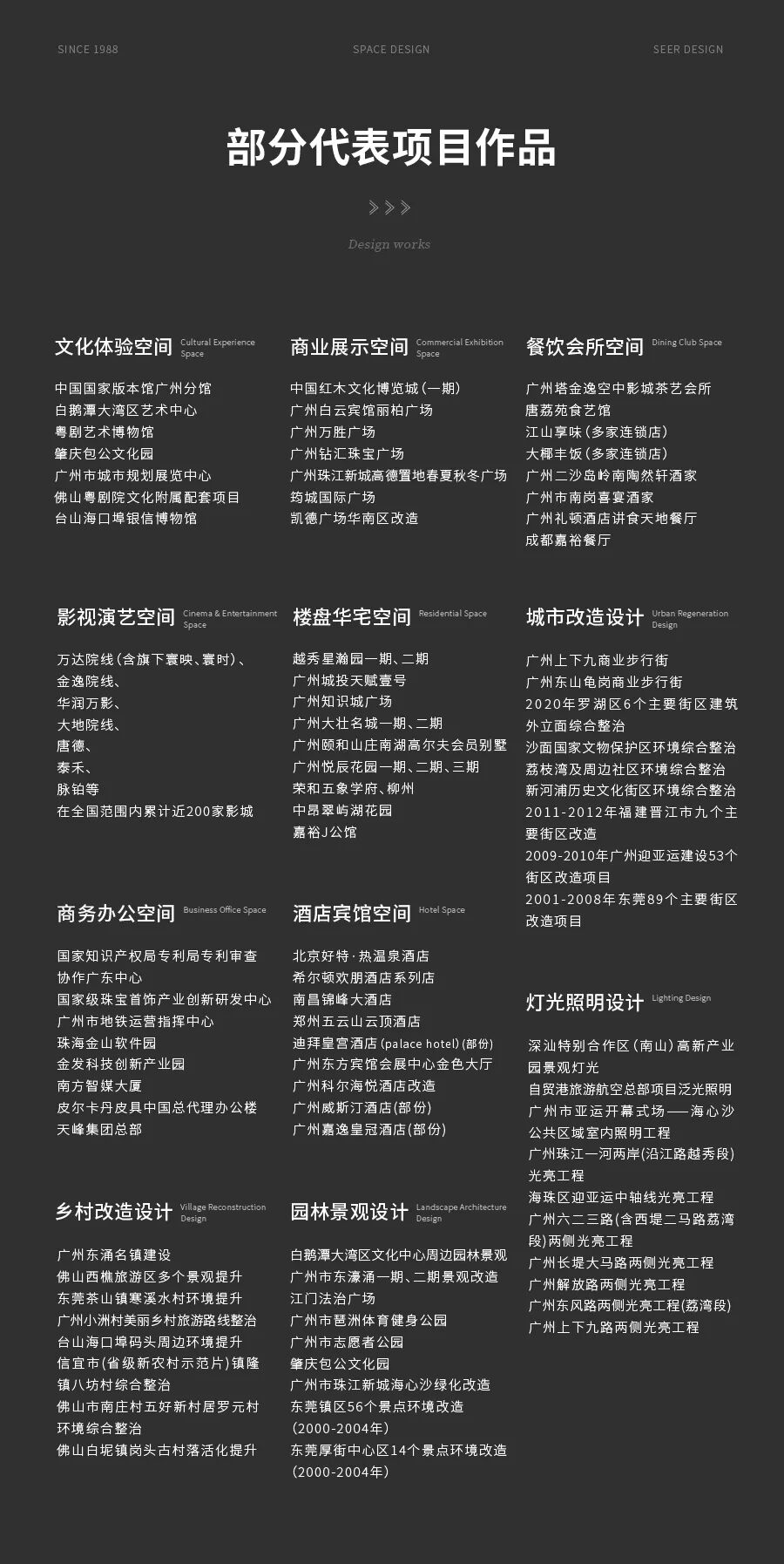 旧城改造、建筑室内外、景观照明工程与设计、策划、顾问等多元化的综合型设计院。