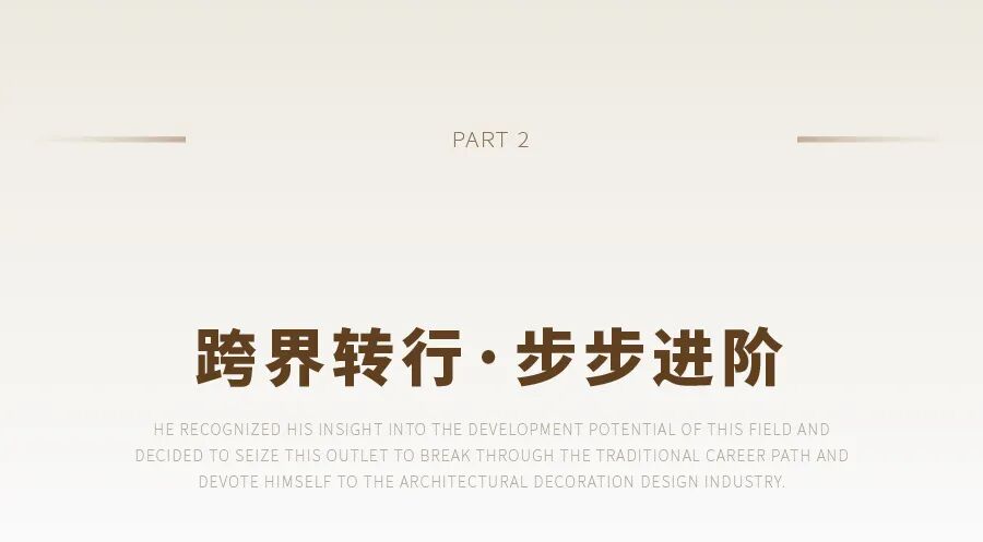 他洞察到该领域的发展潜力,决定抓住这个风口,从而突破传统职业路径,投身于建筑装饰设计行业。